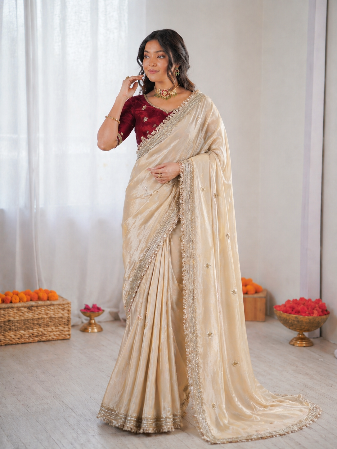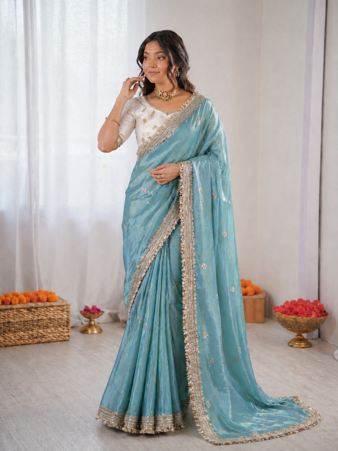✔️Saree Fabric : Soft Crunchy✔️Saree Work : Sequence Embroidery work & C-Pallu Cut Work✔️Saree Size : 5.5 MTR✔️Blouse Fabric : Soft Crunchy✔️Blouse Work : Sequence Embroidery work✔️Blouse Size : 1 MTR (Un-Stitched)