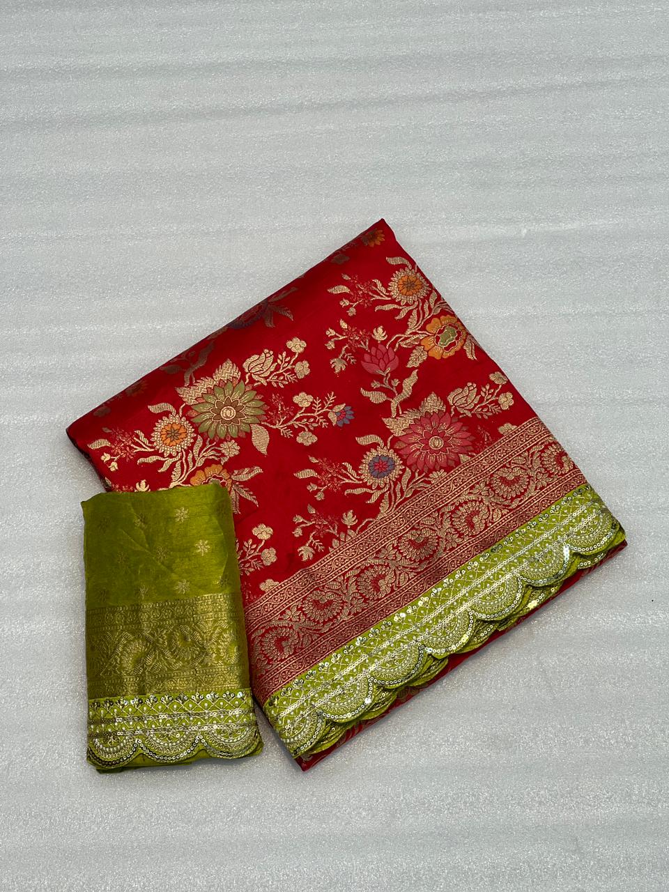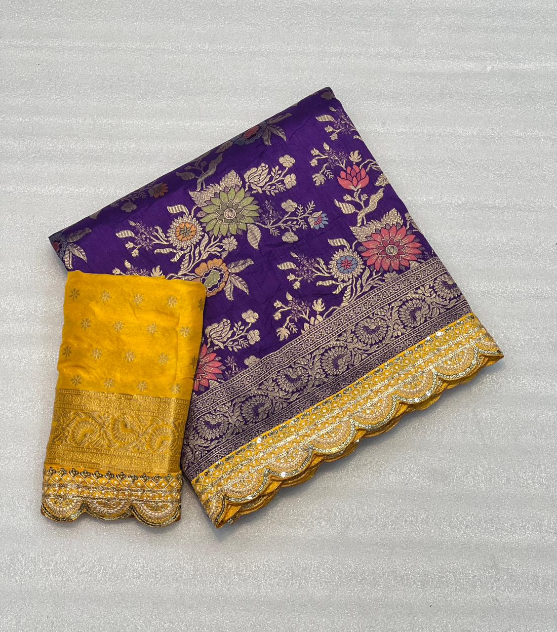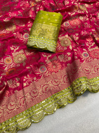 Beautiful Fancy Dolla Silk with Meenakari & Zari Weaving Work Saree