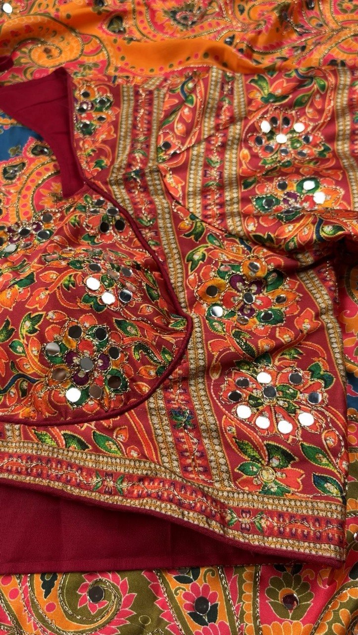 ✔️Blouse Work : Beautiful Digital print with Aari work & Real mirror work