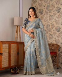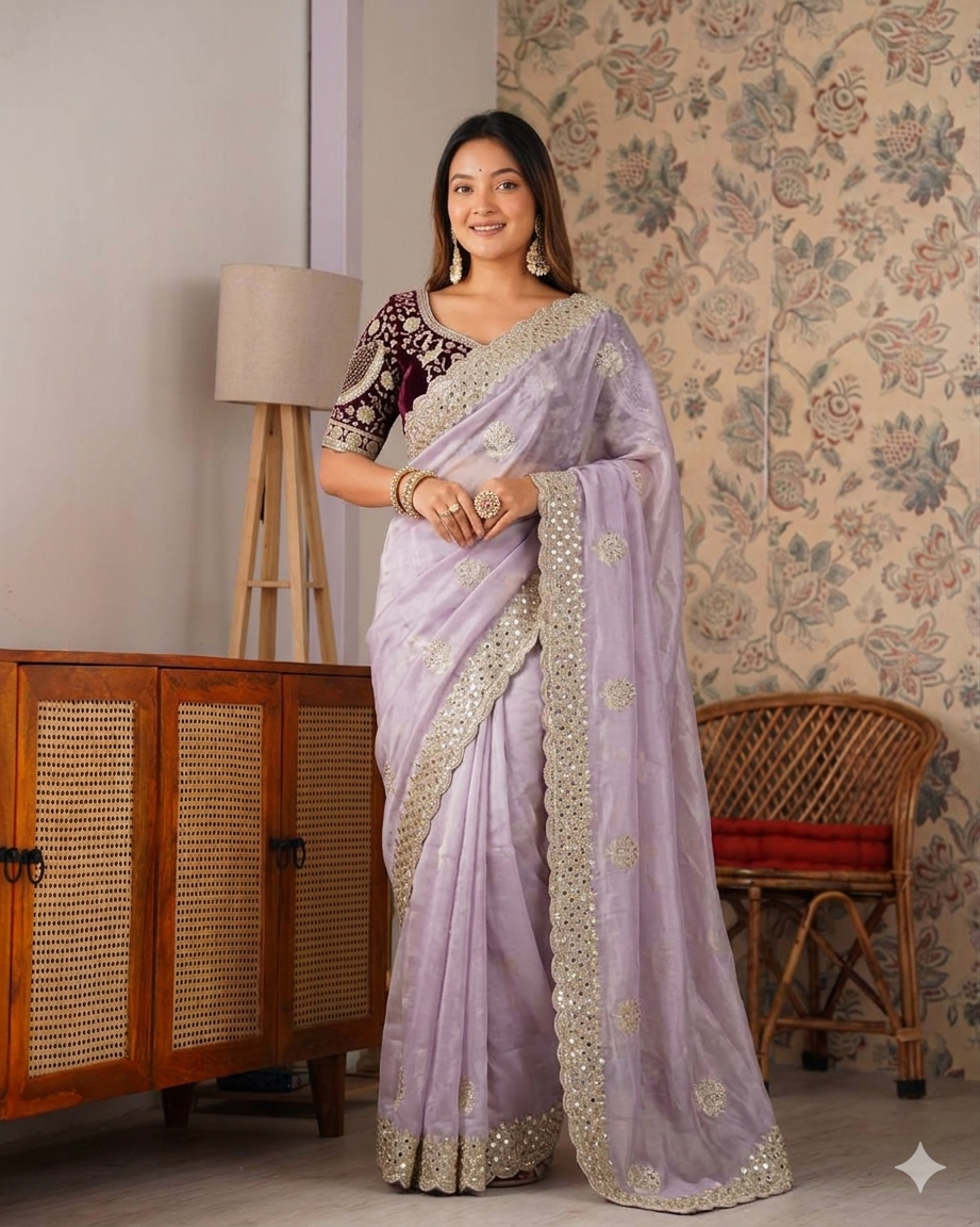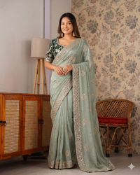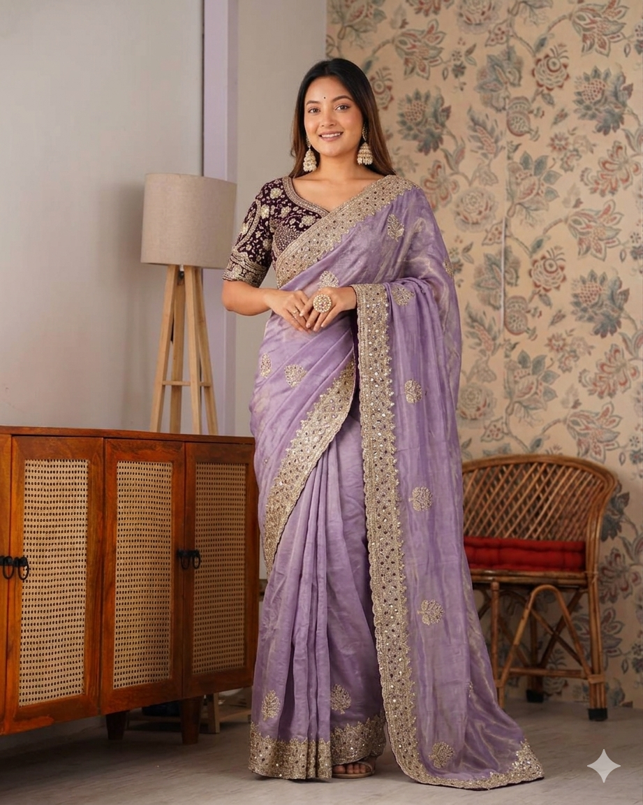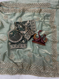 Beautifull Soft Frendy Satin With Sequience Zari Embroidery Work Saree