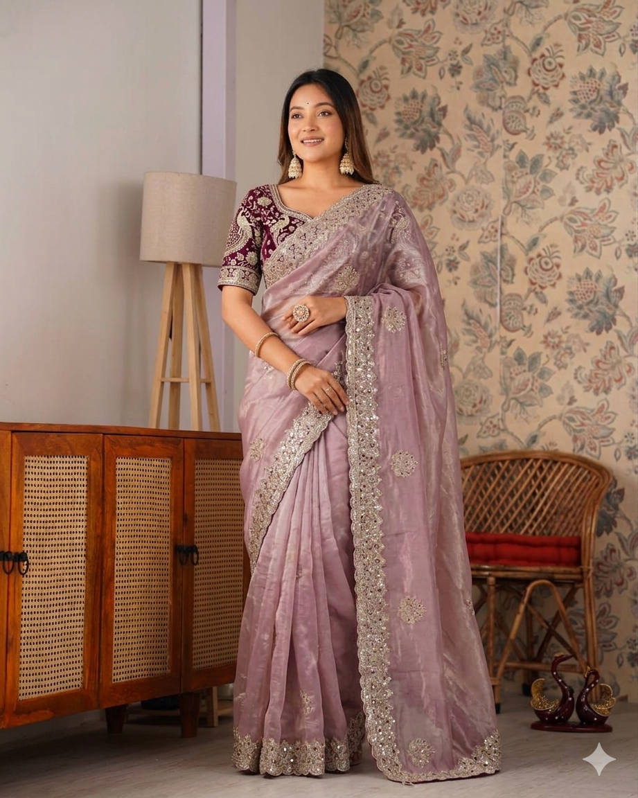 ✔️Saree Work : Sequance and Zari Embroidery Work