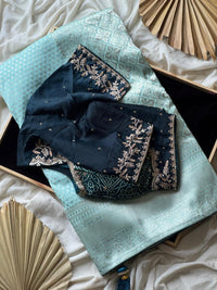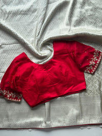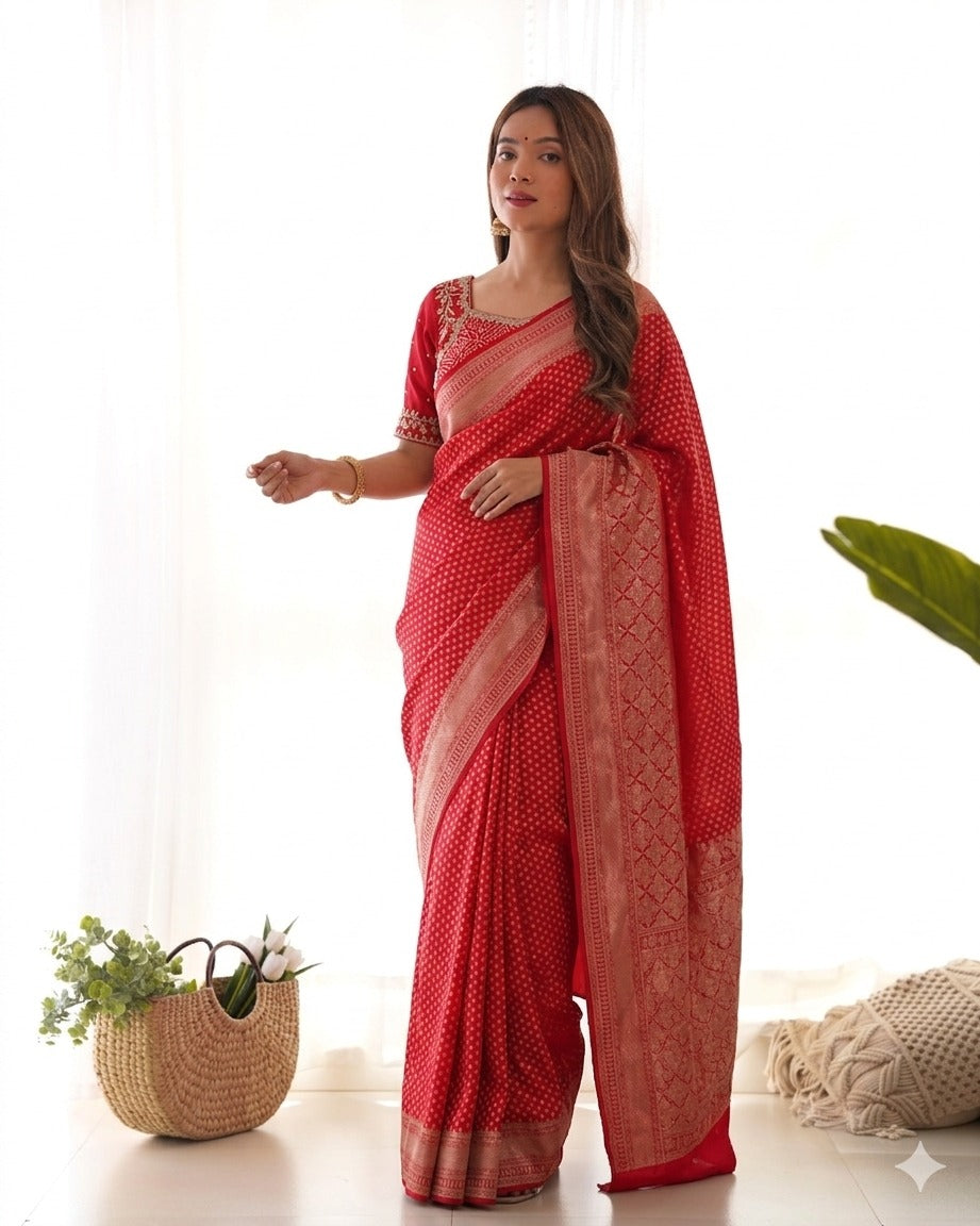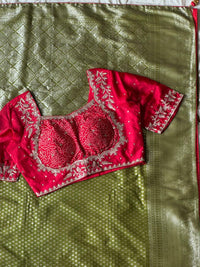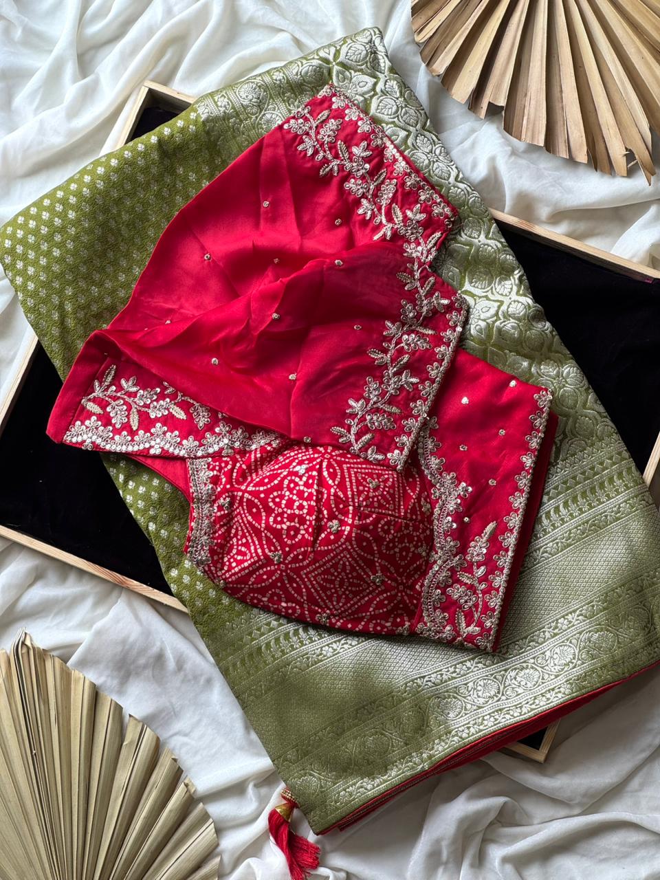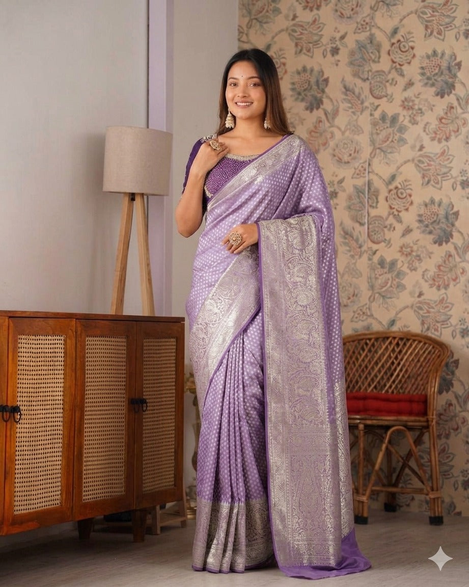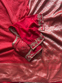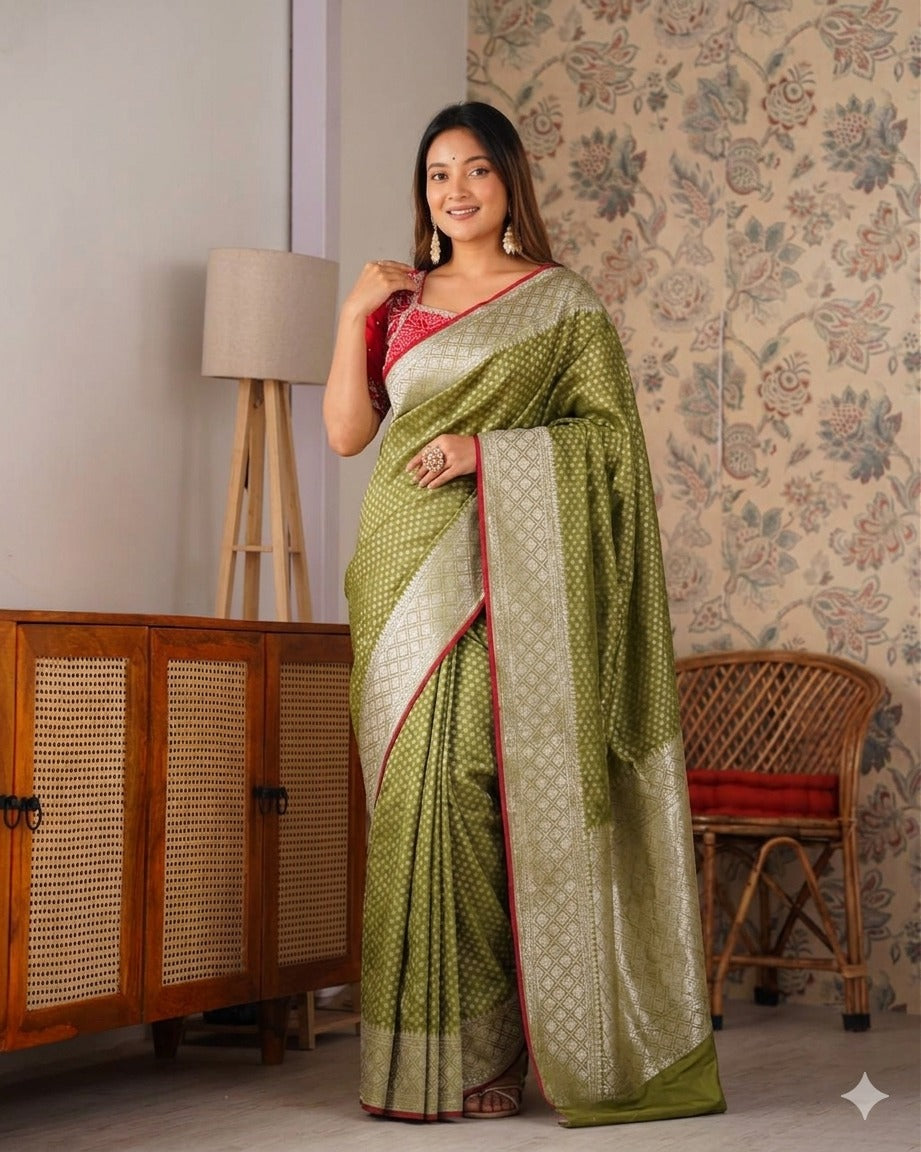 Designer Pure Banarasi Saree With Weaving Motifs & Contrast piping saree