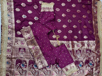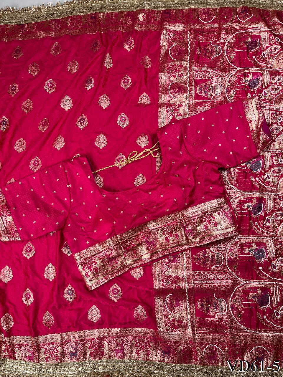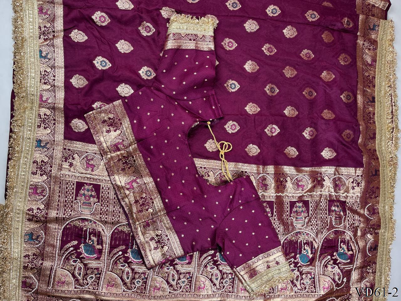 ✔️Saree Work : beautiful weaving jacquard border nd weaving jhal in all over saree with self weaving effect in all over saree nd special touch up with hand work khatli cutdana outing on pallu with 3 mm sequence embroidery coding work phur big lace border nd latkan