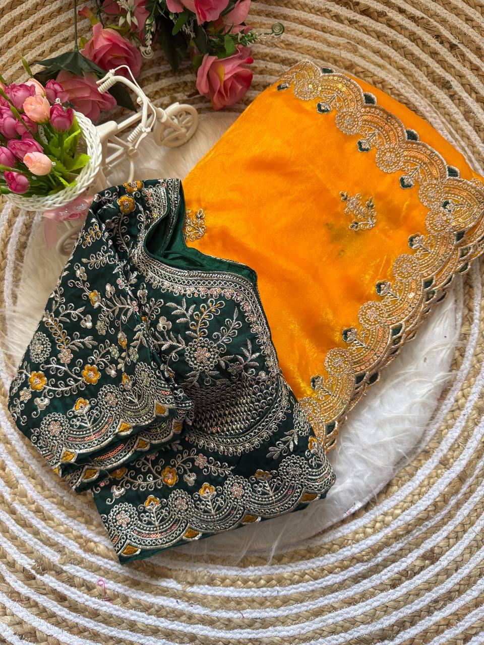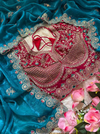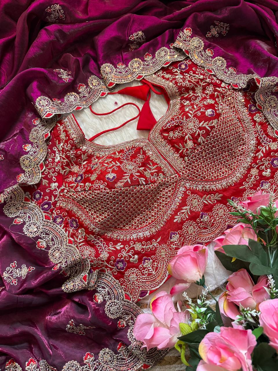 ✔️Blouse Work :  Heavy embroidery & sequence detailing