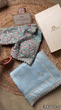 Sky Blue Color Tibby Silk With Sequience Work Saree