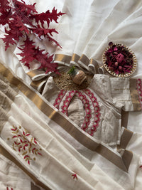 White Color Pure Khadi Handwork Saree