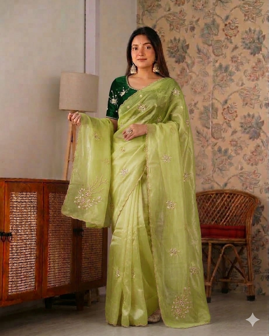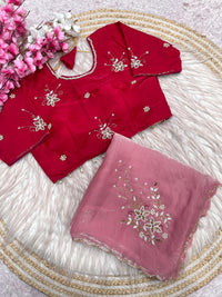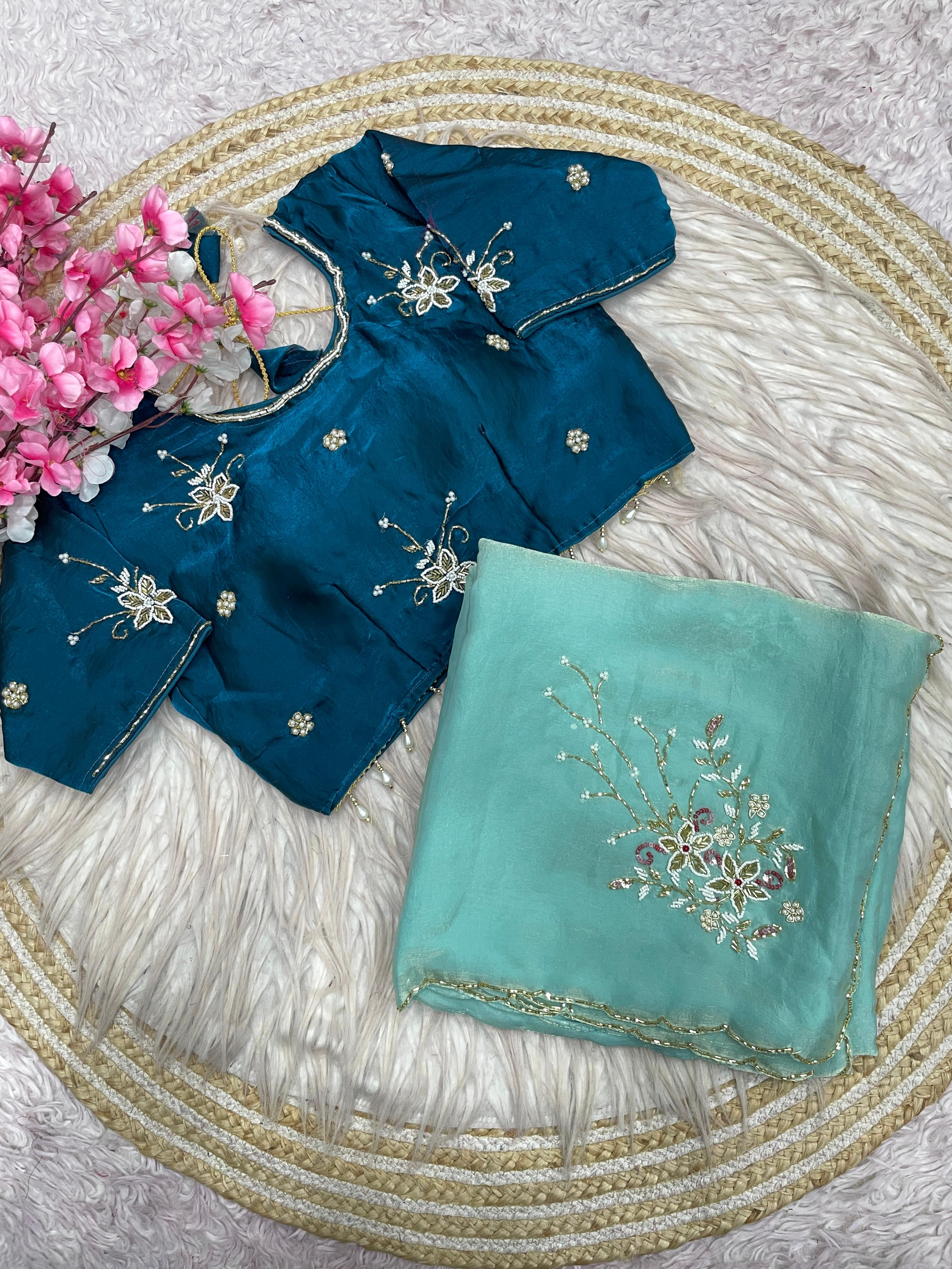 Beautiful Fancy Satin with Khatli Cutdana Hand Work Designer Saree