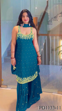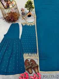 Beautifull Faux Georgette Hand Work Top Plazzo