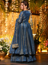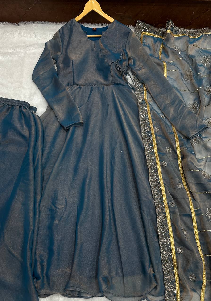 Beautifull French Moss With Crap Inner Embroidery Work Gown