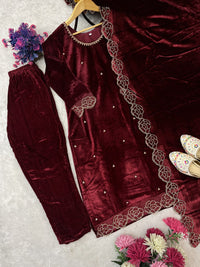 Beautifull Heavy Viscose Velvet With Rhinestones Work Top Pent