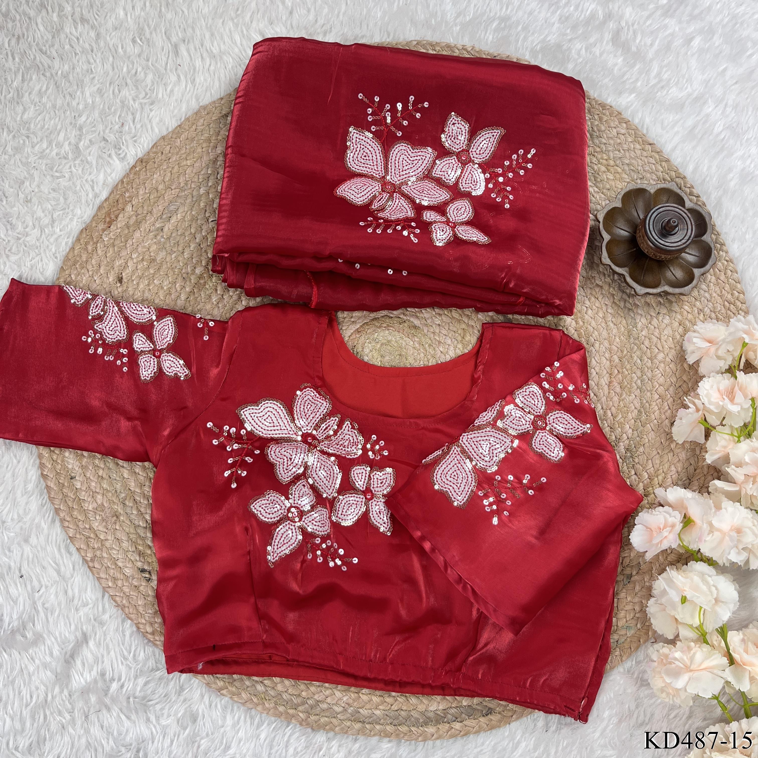 ✔️Saree Fabric : Pixcel Crush ✔️Saree Work : Beautiful Katdana and pearls work ✔️Saree Size :- 5.5 Mtr ✔️Blouse Fabric : Pixcel Crush Fabric ✔️Blouse Size : 0.80 MTR (Un-Stitched)