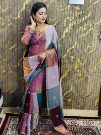 Beautifull Multi Color Space Silk With Silver Hand Work Saree