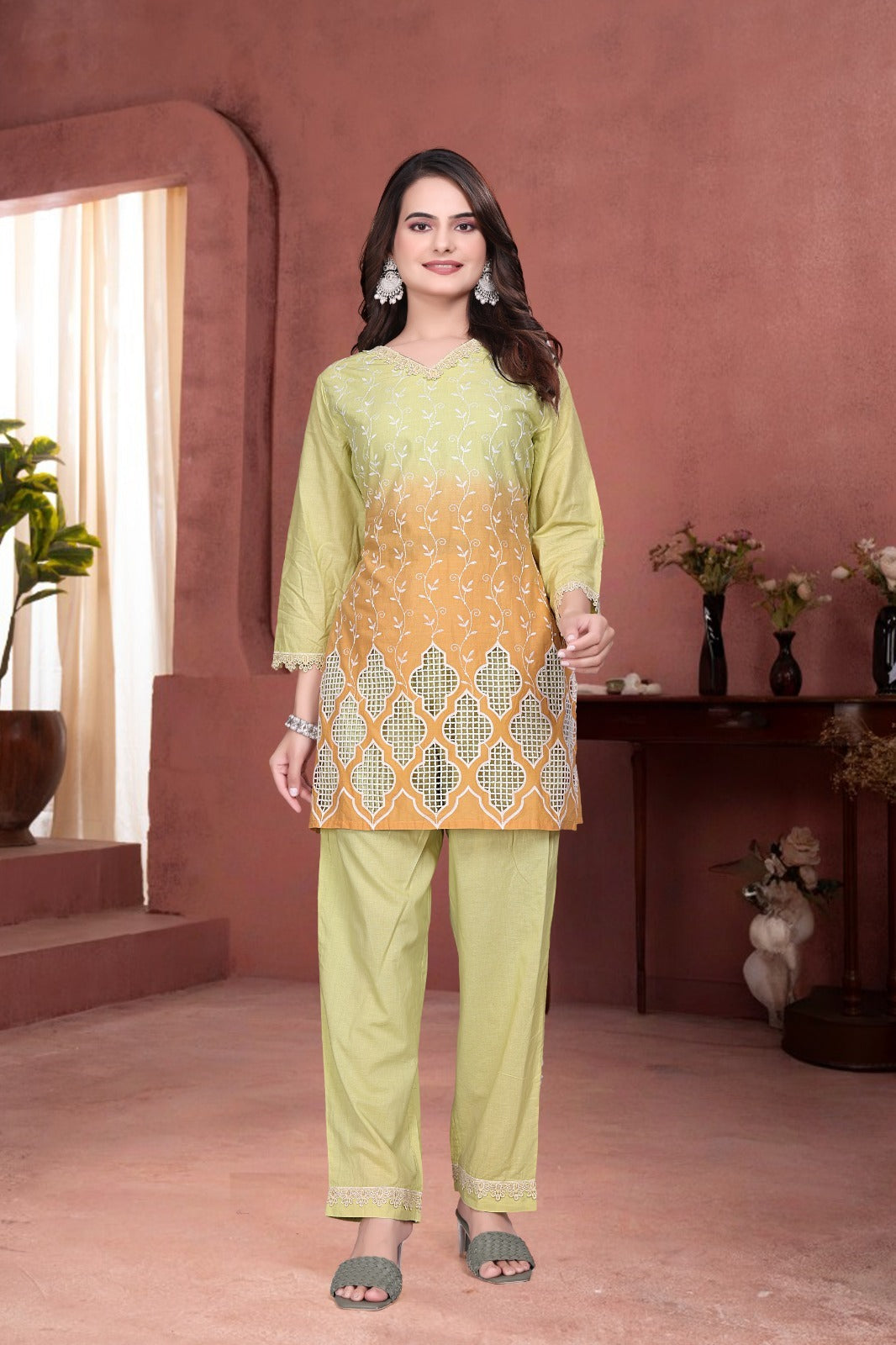 Beautifull Pure Shiffli Cotton With shiffli Work CO-ordset