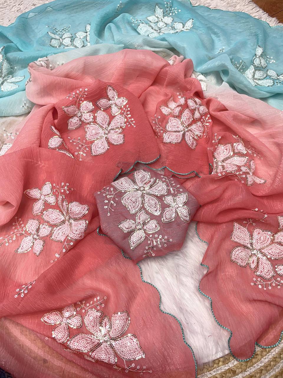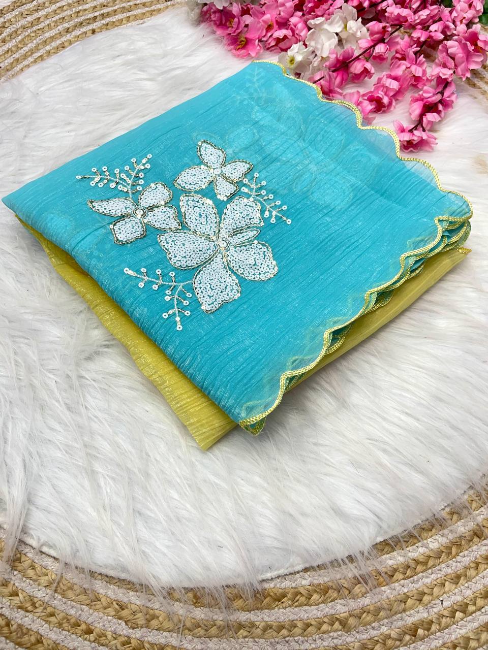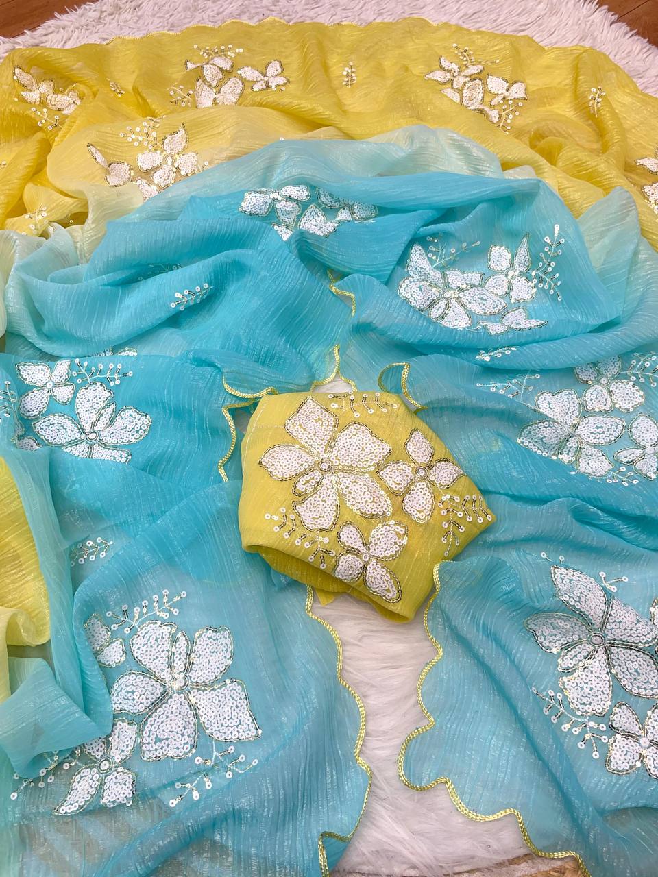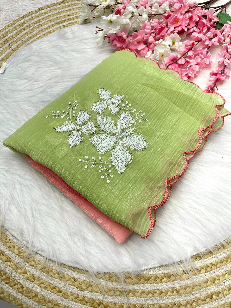 Beautifull Soft Crunchy Peding With Sequience Work Saree