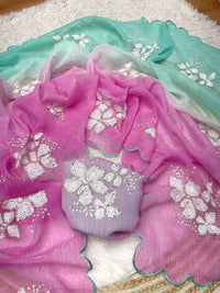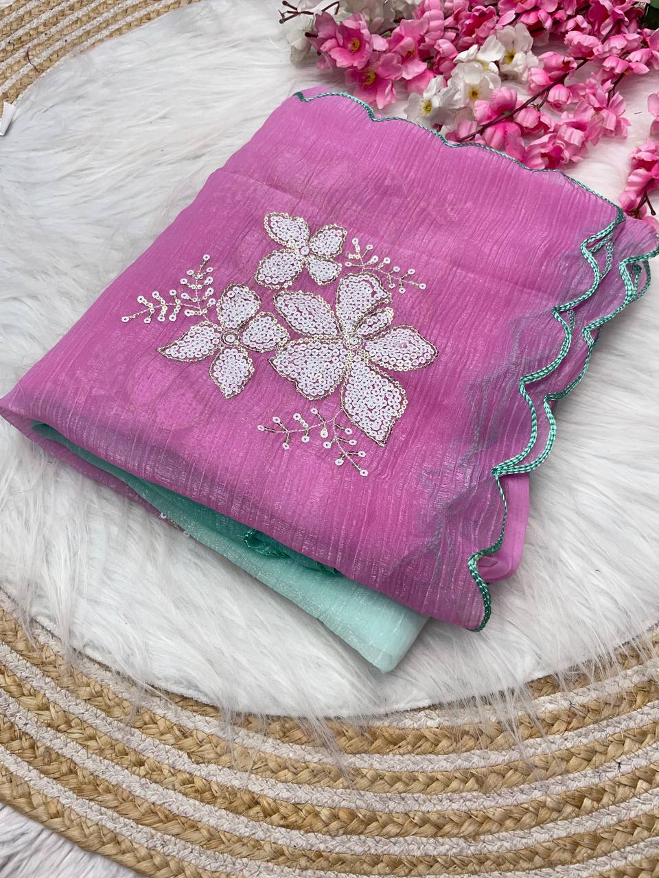 ✔️Saree Work : Soft Crunchy pending Fabric with Thred & 3+5 Sequence With beautiful Arco bodar all over saree