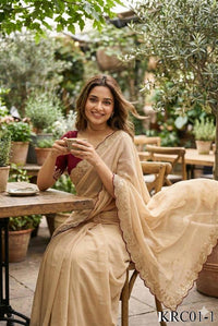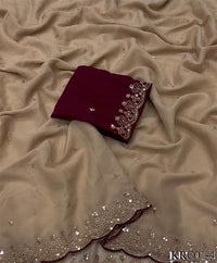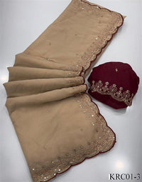 Beige Color Georgette Embroidery Work Saree