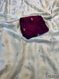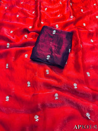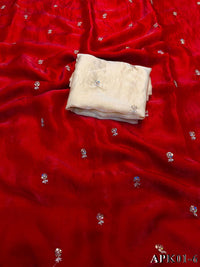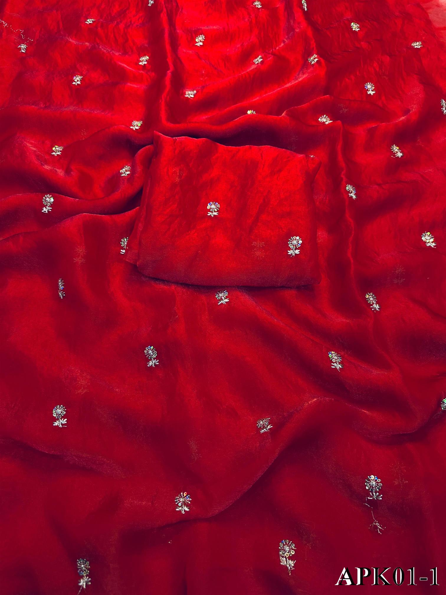 ✔️Saree Fabric : Pixcel Crush ✔️Saree Work : Beautiful Katdana and pearls work ✔️Saree Size :- 5.5 Mtr ✔️Blouse Fabric : Pixcel Crush Fabric ✔️Blouse Size : 0.80 MTR (Un-Stitched)