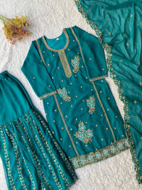 ✔️Kurti Fabric : Chinon ✔️Kurti Work : Sequence Embroidery Work Front Side & Back Side ✔️Kurti Size : M(38) L(40) Xl(42) Xxl(44) ✔️Kurti Length : 40 ”inch ✔️Pent Fabric : Chinon ✔️Pent Work : Lace...