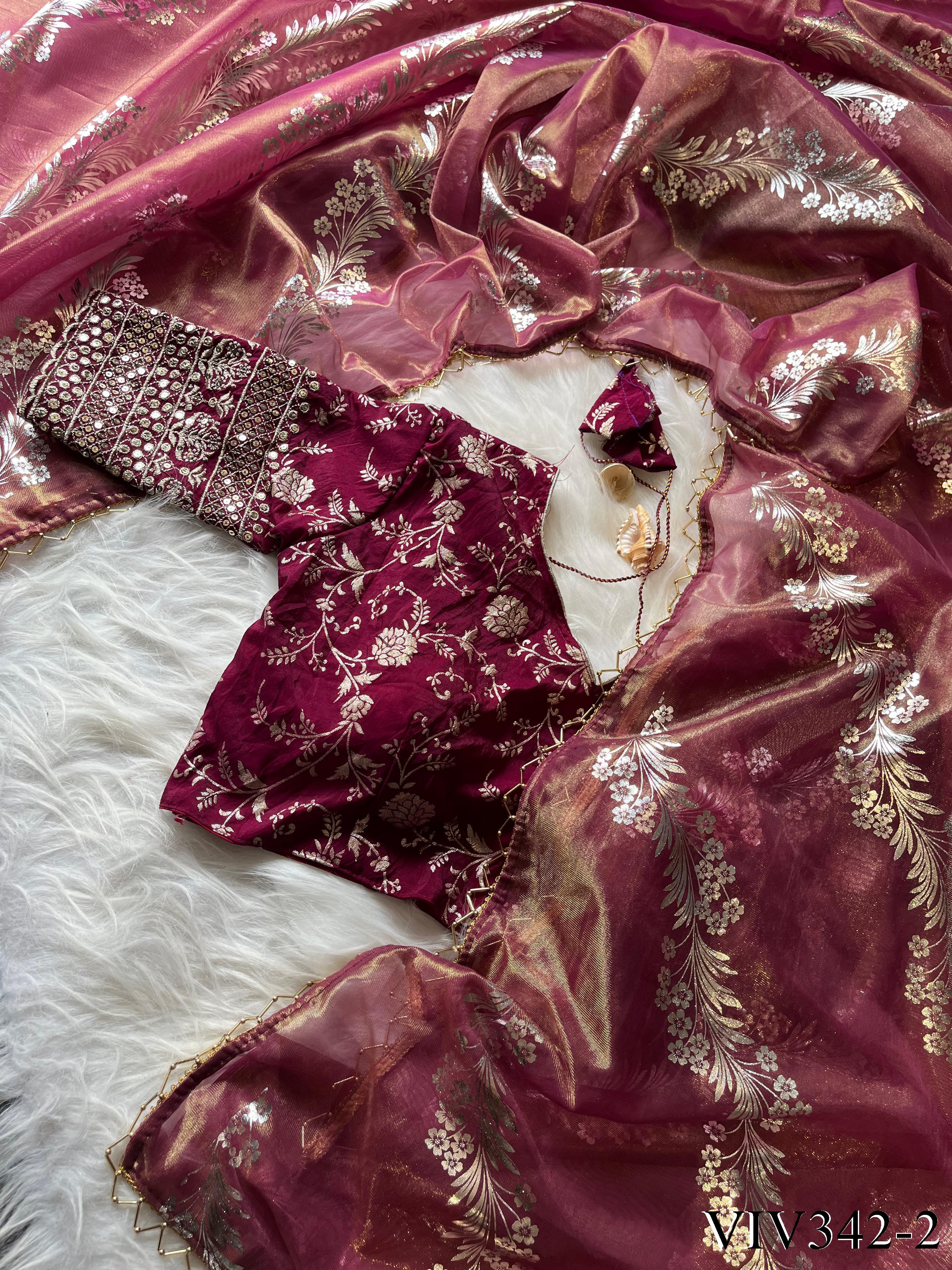 ✔️Saree Fabric : Space silk ✔️Saree Work : Original beeds work ✔️Saree Cut : 5.5 MTR ✔️Blouse Fabric : Space silk✔️Blouse Work : Beads Work ✔️Blouse Size : 0.80 Mtr (Un-Stiched)