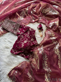 ✔️Saree Fabric : Pixcel Crush ✔️Saree Work : Beautiful Katdana and pearls work ✔️Saree Size :- 5.5 Mtr ✔️Blouse Fabric : Pixcel Crush Fabric ✔️Blouse Size : 0.80 MTR (Un-Stitched)