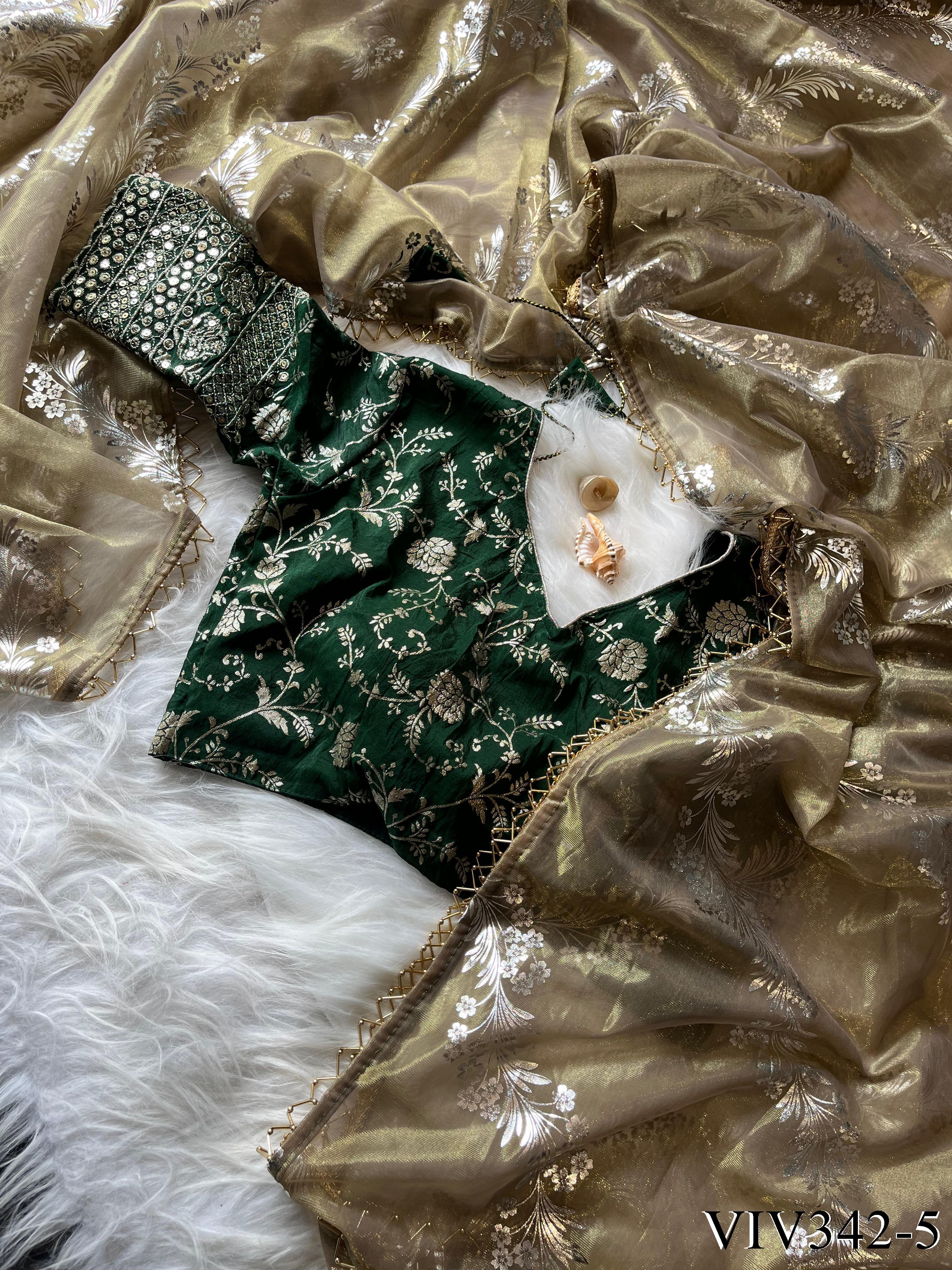 ✔️Ready To Wear ✔️Saree fabric : Rangoli Silk ✔️Saree Work : Embroidery Butta Available On Ready To Wear Saree Pleats ✔️Saree Cut : 5.5 Mtr ✔️Blouse Fabric : Banglory ✔️Blouse Work : Front & Back...