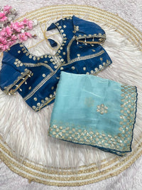 ✔️Blouse Work :  embroidery work blouse with beautiful moti lace