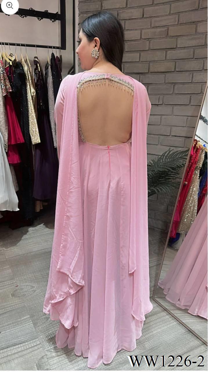 Pink Color Pure Fox Georgette Embroidery Work Gown
