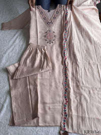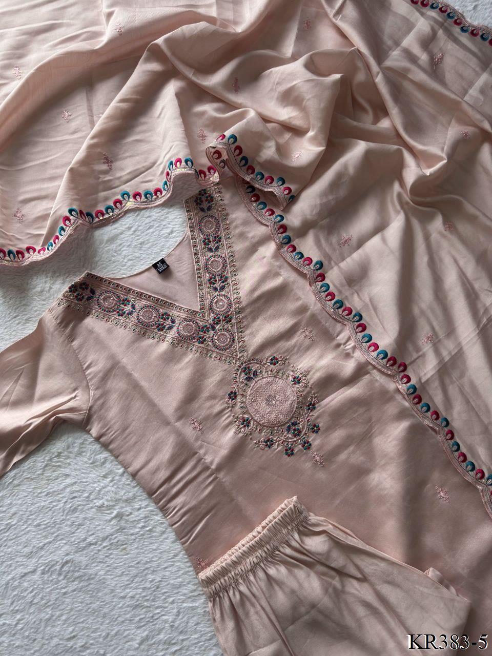 Premium Roman Silk With Embroidery Thread Work Top Pent