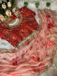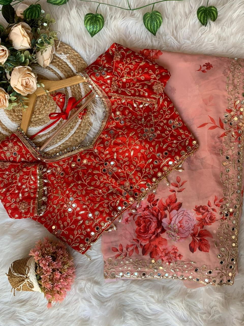 ✔️Saree Work : floral prints embroidery sequence work saree with beautiful original hand mirror on all over saree with aarco