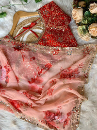 Pure Gerogette Floral Print Work Saree