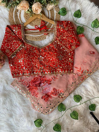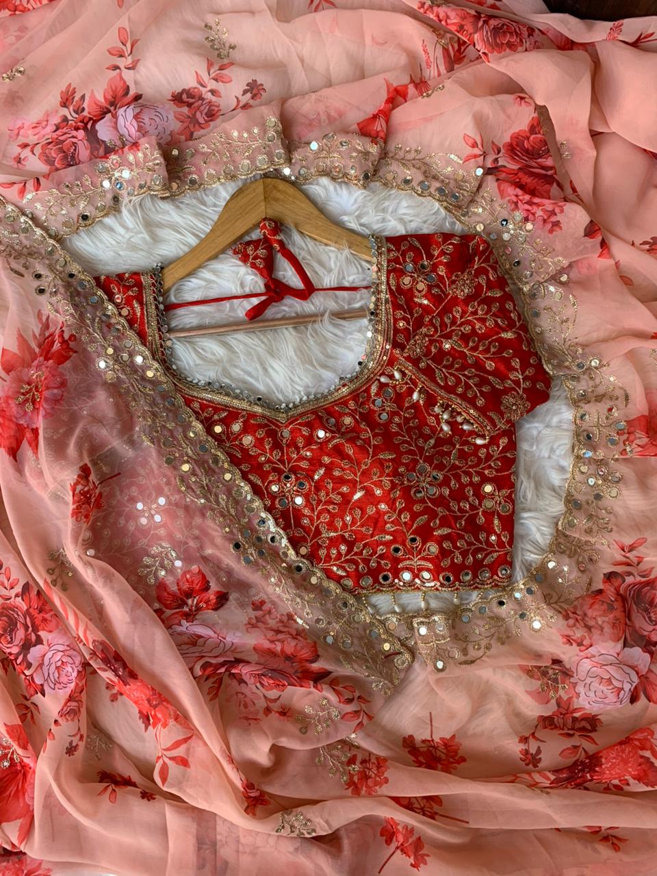 ✔️Blouse Work : Paired with fully stiched embroidery work mirror