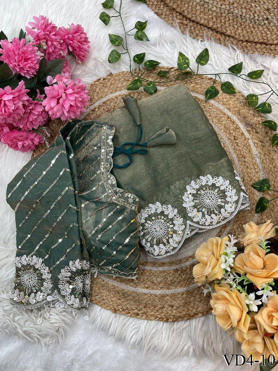 ✔️Blouse Work : Paired with fully stiched embroidery work blouse with big sleeve patte