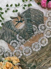 ✔️Saree Work : beautiful embroidery nd 7 mm sequence work heavy border nd buttis in all over saree nd aarco