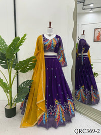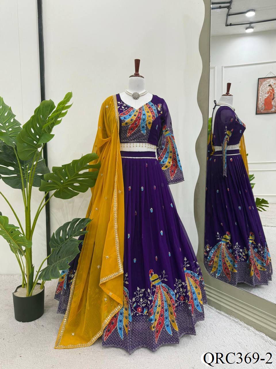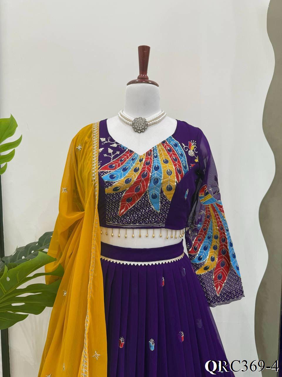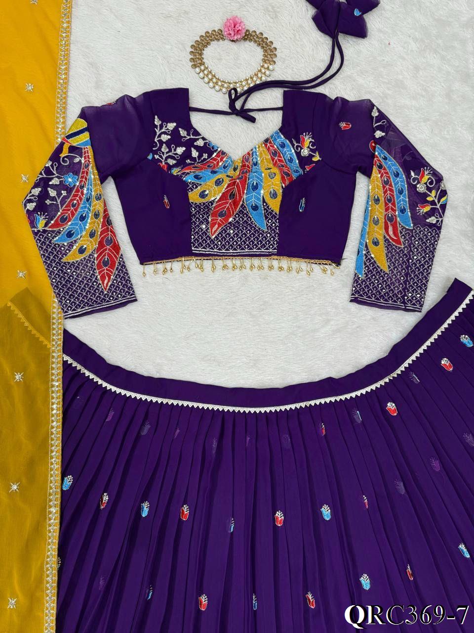 Purple Color Foux Georgette Thread With Sequence Work Lehenga