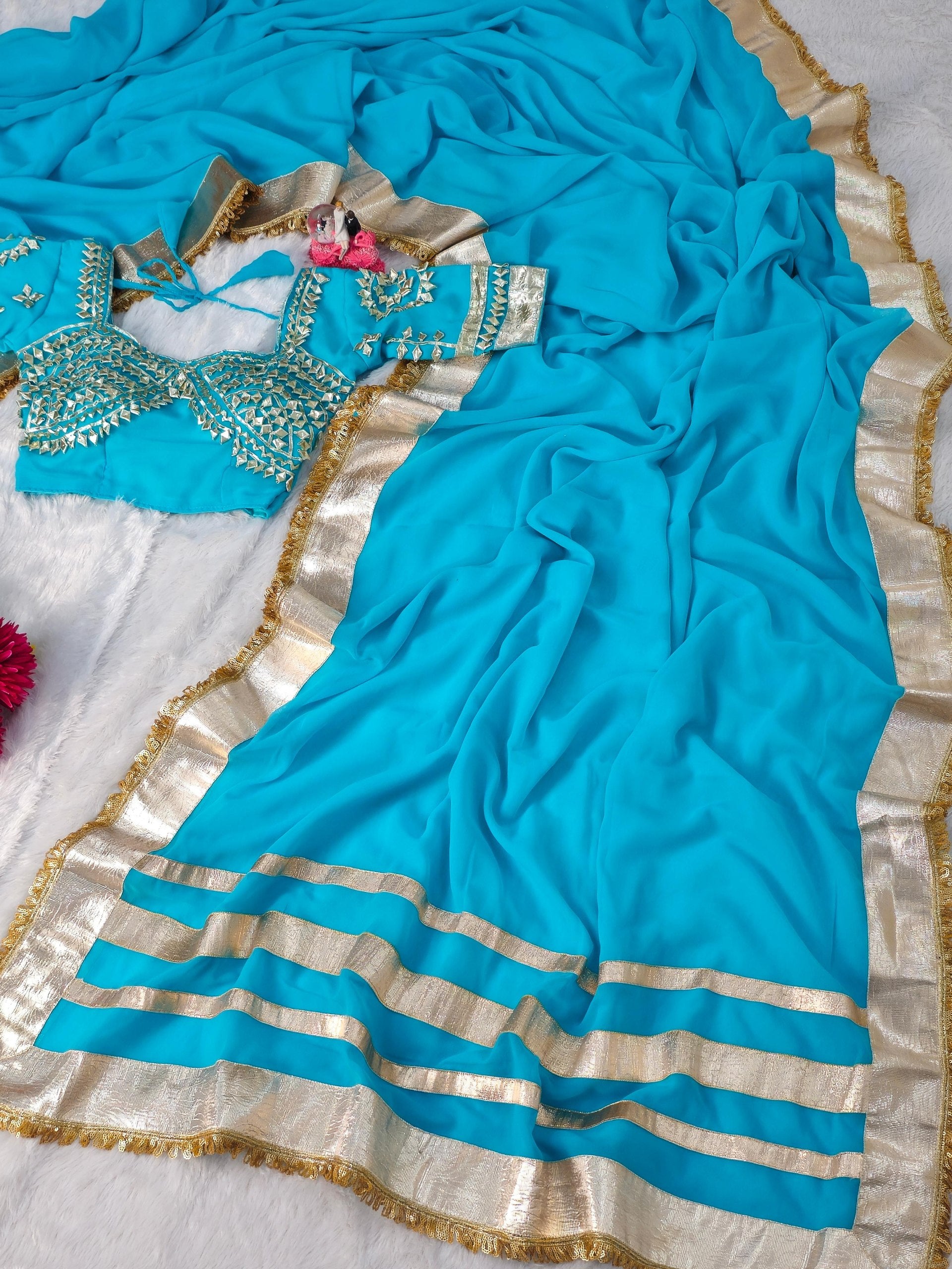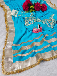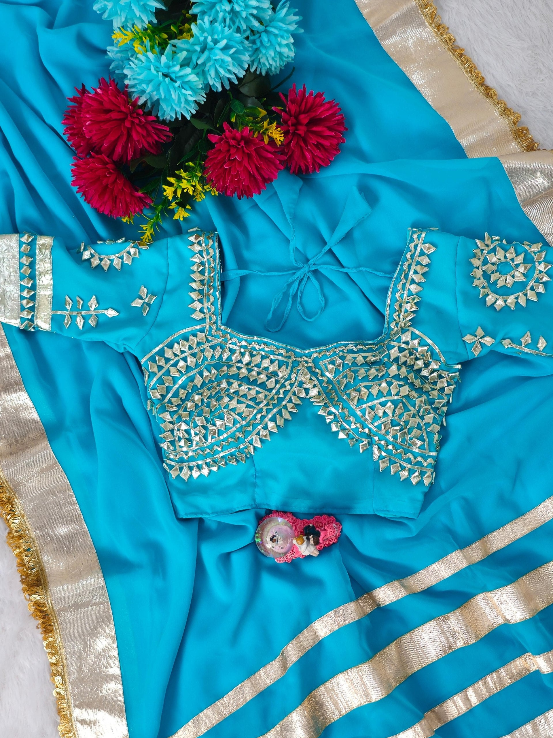 Sky Color Soft Georgette Gotta Patta Work Saree