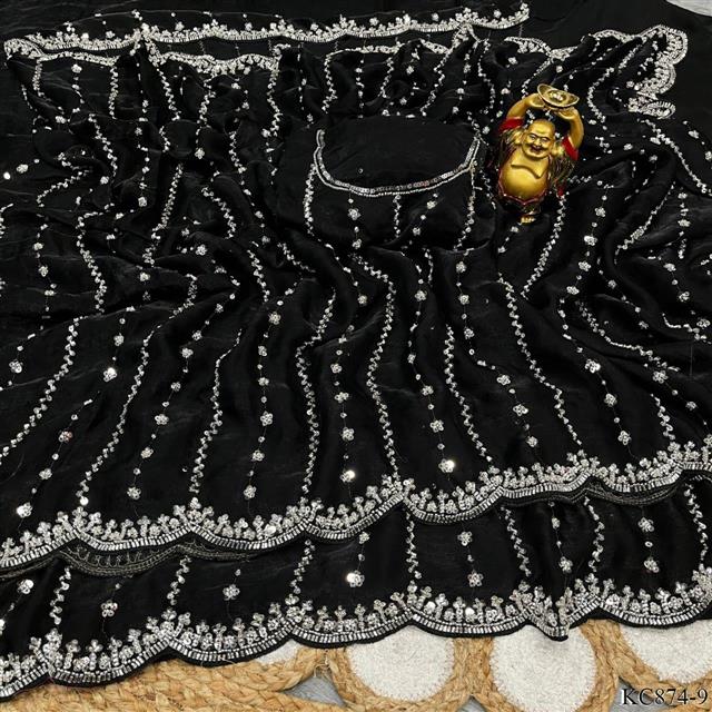 ✔️Saree Fabric : Georgette✔️Saree Work : Heavy 5MM Sequins Embroidery Work✔️Saree Cut : 5.5 Mtr✔️Blouse Fabric : Mono Silk✔️Blouse Work : Embroidery 3mm Sequins lace border✔️Blouse Size : 0.80 Mtr Unstitch