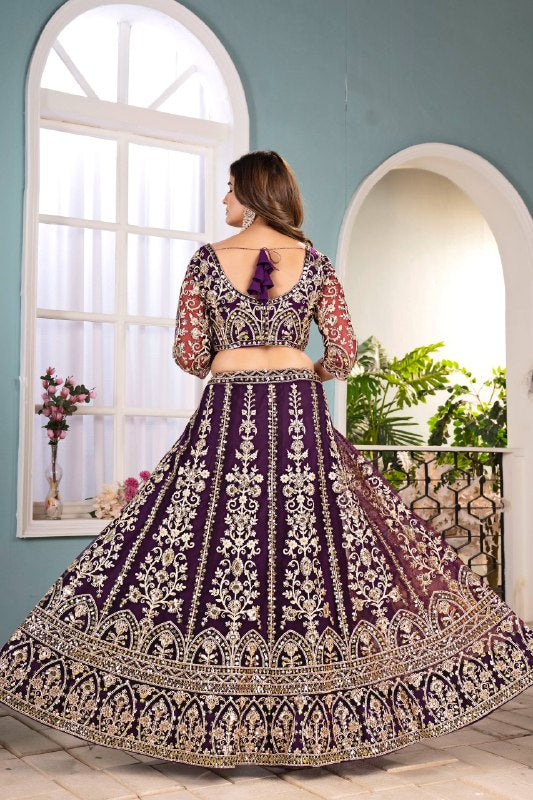 Wedding Special Butterfly Net With Sequience Coding Work Lehenga