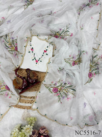 ✔️Saree Work : Beautiful floral print with beads, Sequins and katdana handwork in border