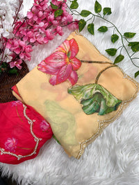 Yellow Color Georgette With Printed Hand Work Saree